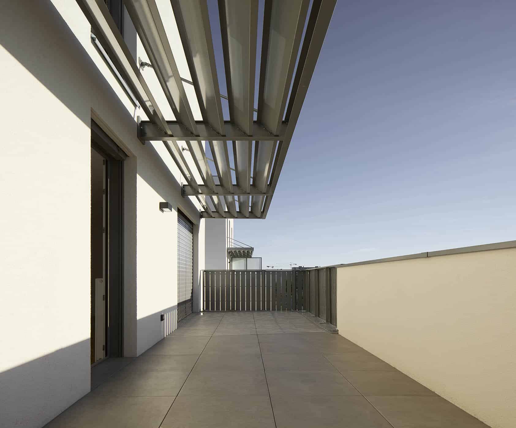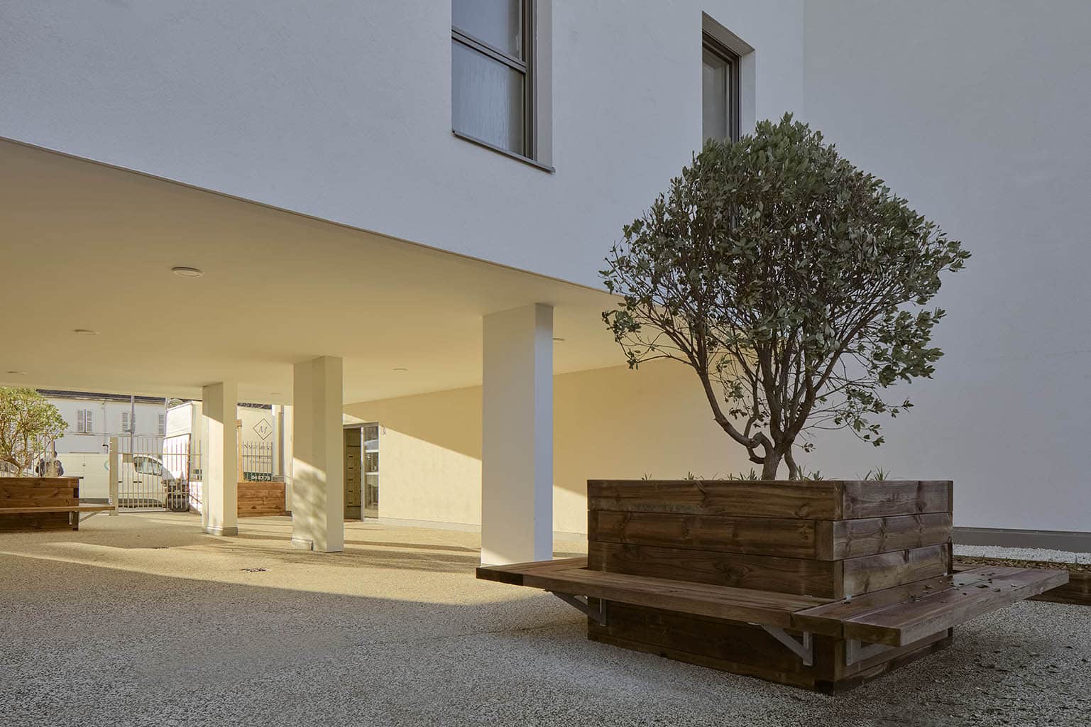 Ces lieux ont aussi été pensés pour être des espaces de convivialité. Une terrasse commune réalisée en dalle béton fait le lien entre les différents bâtiments. Certains profiteront du solarium, pendant que les autres flâneront près des jardinières fleuries…