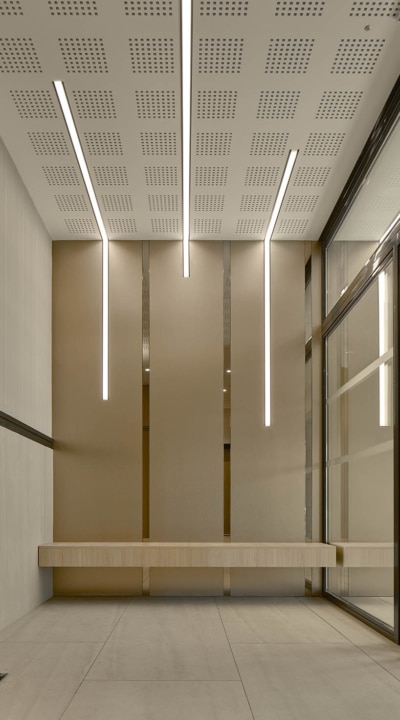 Le porche au rez de chaussée, offre une percée visuelle sur la rue et dévoile le jardin au cœur de l’îlot. Il dessert deux cages d’escaliers conduisant à l’ensemble des bâtiments. Vastes et lumineuses, elles ont été pensées au-delà de leur fonction de circulation comme des espaces communs de rencontres et de convivialité.