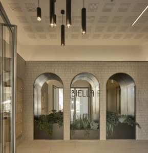 Biella est un cocon, un refuge au cœur du tissu urbain. Si le front de rue est entièrement bâti, c’est pour mieux dissimuler le jardin intérieur. Tous les extérieurs ont été aménagés pour offrir aux occupants une sensation de bien-être.
