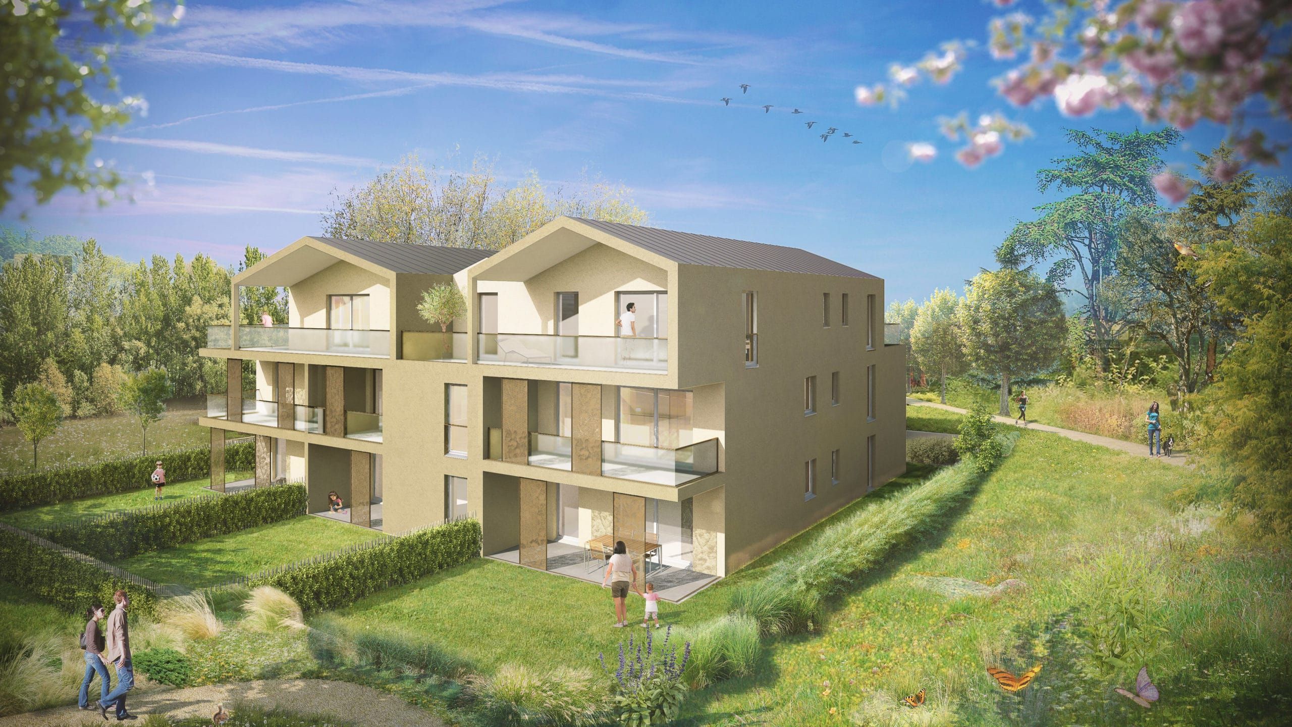 Les commerces, écoles et crèches se trouvent à quelques minutes à pied ou en voiture. Des logements neufs à part en toute intimité : Les lignes architecturales s’allient avec harmonie à l’écriture paysagère : en retrait de la Voie Romaine, les petits bâtiments entourent un petit bois au centre d’un immense pré et proposent deux styles de logements, entre tradition en modernité. Baladez-vous en toute quiétude dans ce bel espace vert, profitez des saisons avec bonheur : tout s’accorde pour vous offrir le meilleur d’un art de vivre remarquable…