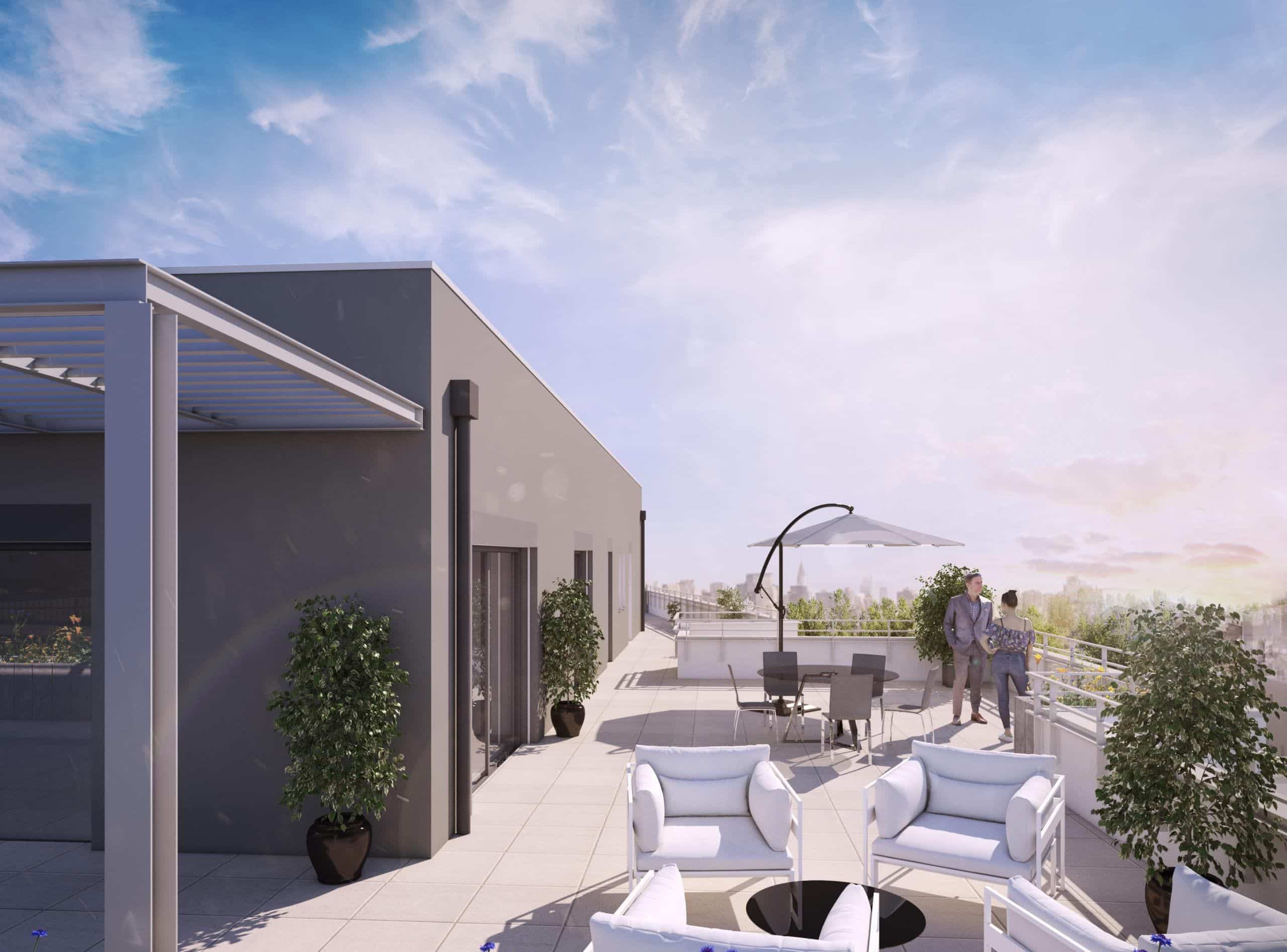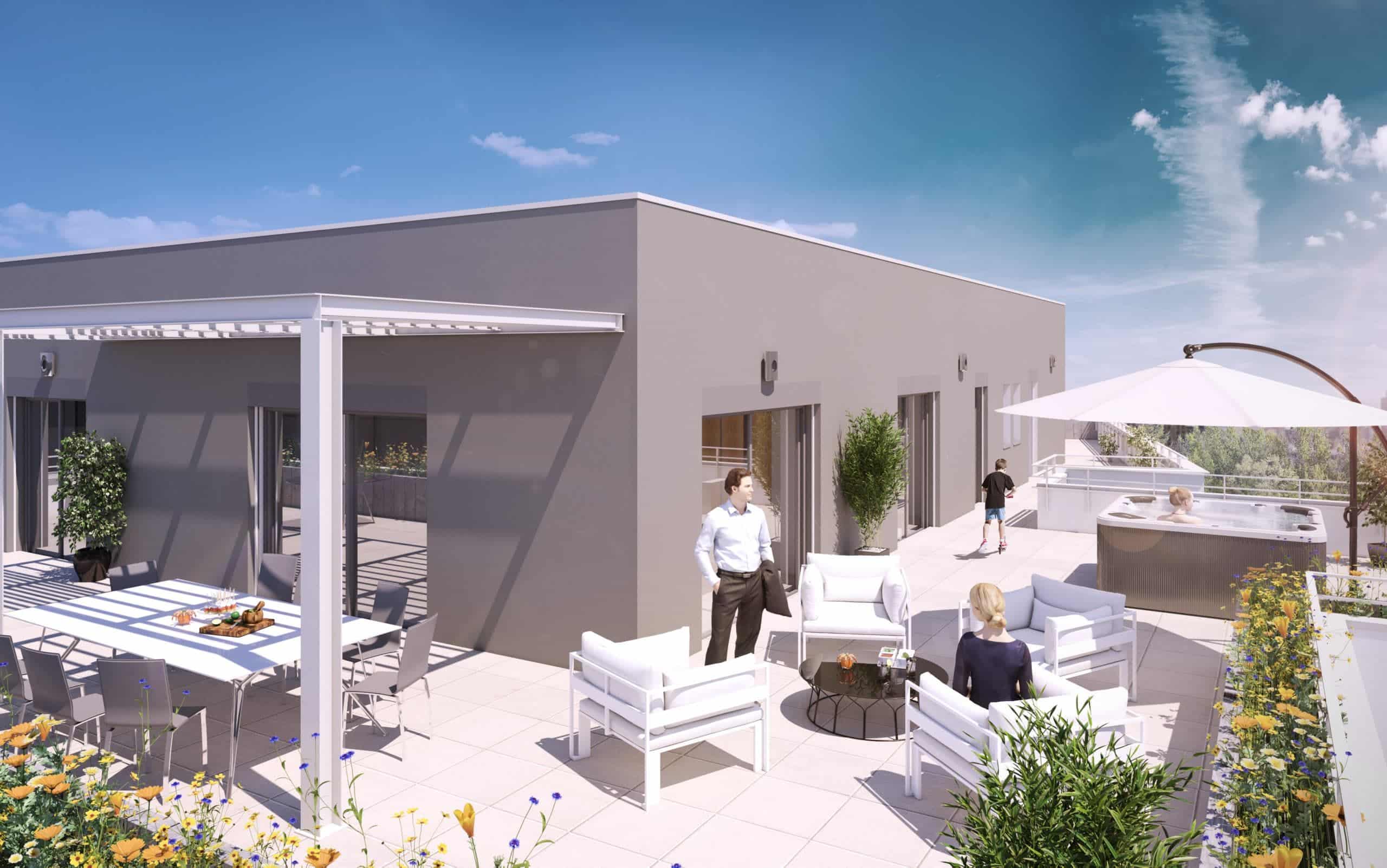 Ainsi dès l’entrée, le hall offre une percée visuelle sur le jardin comme un joyau vert à découvrir. Sobriété et équilibre ont guidé le geste architectural vers des lignes pures et rassurantes conférant à l’ensemble la vision d’une résidence à la fois cossue et contemporaine. Une collection d’appartements tous singuliers Balcons, terrasses ou loggias… choisissez vos ouvertures Une architecture conçue sous le signe de la dualité entre minéral et naturel sur les deux bâtiments qui composent la résidence. Côté rue, des volumes cubiques rythmés par l’alternance d’ouvertures et de loggias. Côté jardin, des balcons et terrasses établissant un dialogue immédiat avec la nature.